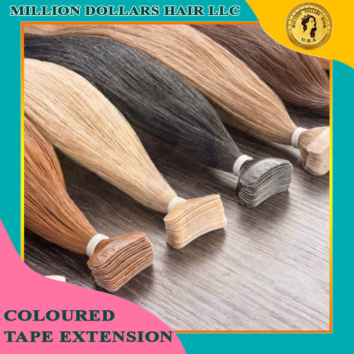 Colored Tape Extension Color: 1#,1B#,2#,4#,6#,8#,10#,22#,24#,60# and 613#. Material: 100% Virgin Indian...